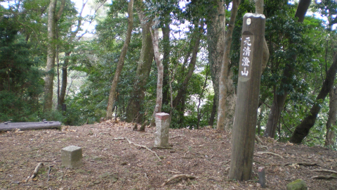 環境庁と千葉県が連名で建てた案内板があり、そこには、「清澄寺はもともとこの山にあり、礎石が残っています。いつしか現在の清澄山に移ったことから、この山を元清澄山と呼ぶようになりました」などと書かれていた。なるほど、清澄山はかつて多くのお堂や宿坊があったとされるから、この山では少々手狭だったのだろう。