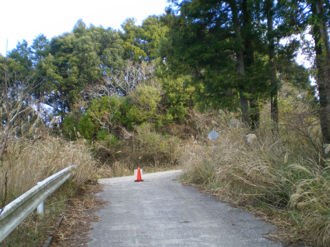 何のタンクだろうと考えていたら、その次に大きな施設が出てきて駐車場には車が何台か止まっている。「サンライフ鹿野山」というらしい(WEBをみると、いわくつきの施設である)。すでに倒産しているらしいが、車があるところをみると何かの用途には使っているのだろう。この施設から先は、舗装道路と並行して古道が続いているので、歩きやすい舗装道路に移動した。