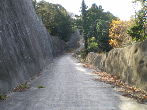 舗装道路から左へ、急坂を登る登山道の入口がある。どうやらここを通って戻るようだ。舗装道路を通って戻れるといいのだけれど、このまま進むと白狐川に沿って竹岡まで下ってしまうようだ。竹岡といえば鋸山を挟んで反対側なので、ICで二つ違う。