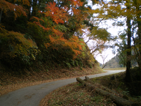 ここから先、5分おきくらいに農家が現れる長い道を右に行ったり左に行ったりしながら歩く。今年は暖かいせいか、ところどころで紅葉が色あざやかだった。結局誰とすれ違うこともなく歩いて、2時過ぎに駐車場に着いた。撤退地点から1時間10分で戻れたので、あまり時間的なロスはなかったようである。