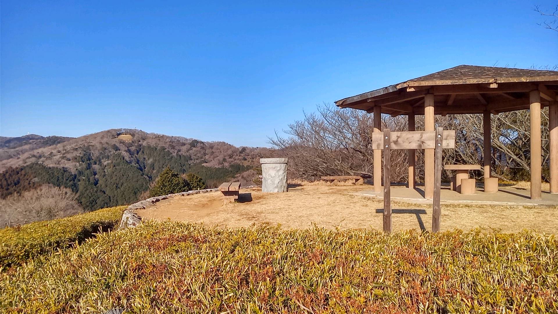 登山口から1時間ほどで小町山頂上。頂上にはテーブル付ベンチが4、5セット置かれている。