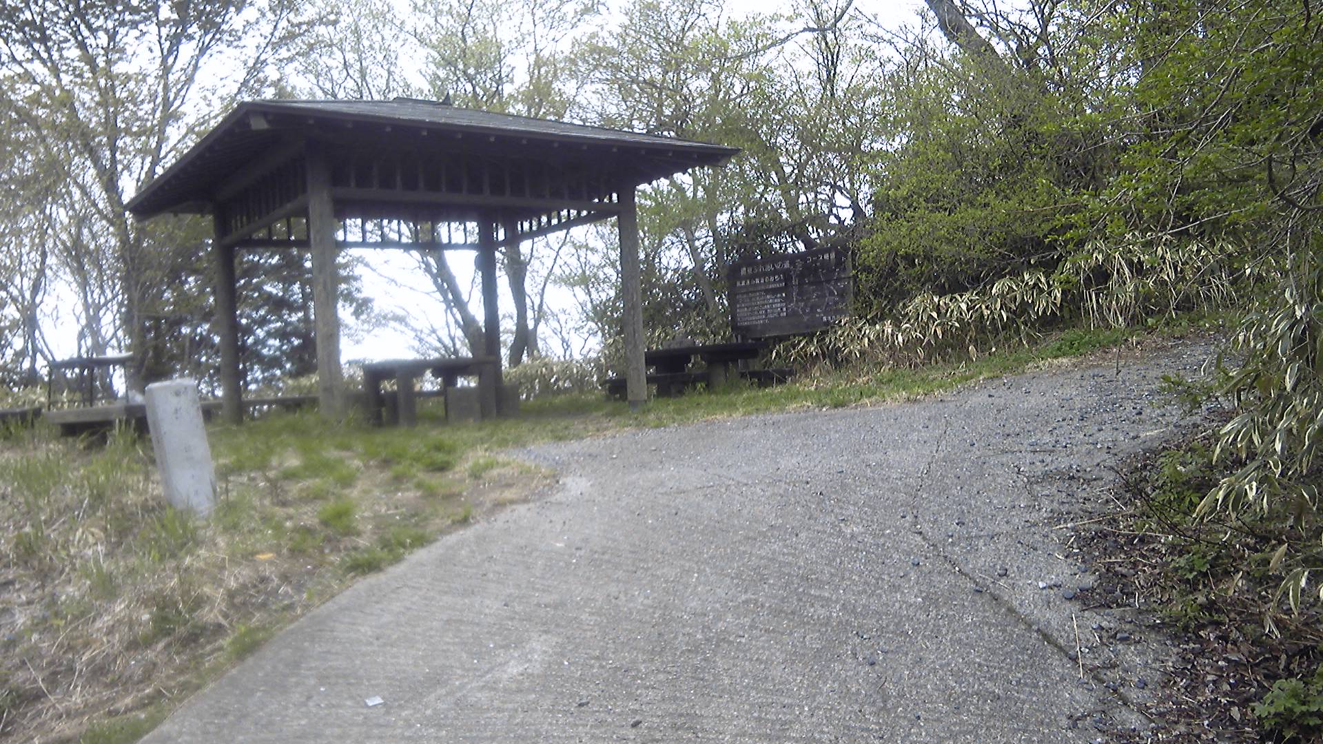 そのすぐ上が、朝日峠展望公園内を通っている車道だった。歩き始めて40分程度で、公園の下まで来た。あとは遊歩道を歩いて、いちばん上の展望台まで登る。
