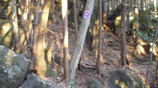 途中で何度も分岐があり、踏み跡も落ち葉で分かりにくい。木の幹や岩に書かれたペンキマークが頼りだが、それでも予定した方向には進めなかった。