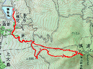 みかん園ルートは推奨登山道ではないが、かつて1/25000図に掲載されていた登山道である。つくば市と桜川市の市境で国有林管理道でもあるので、廃道化している訳でもない。いまでも十分登山道の役目を果たしている。