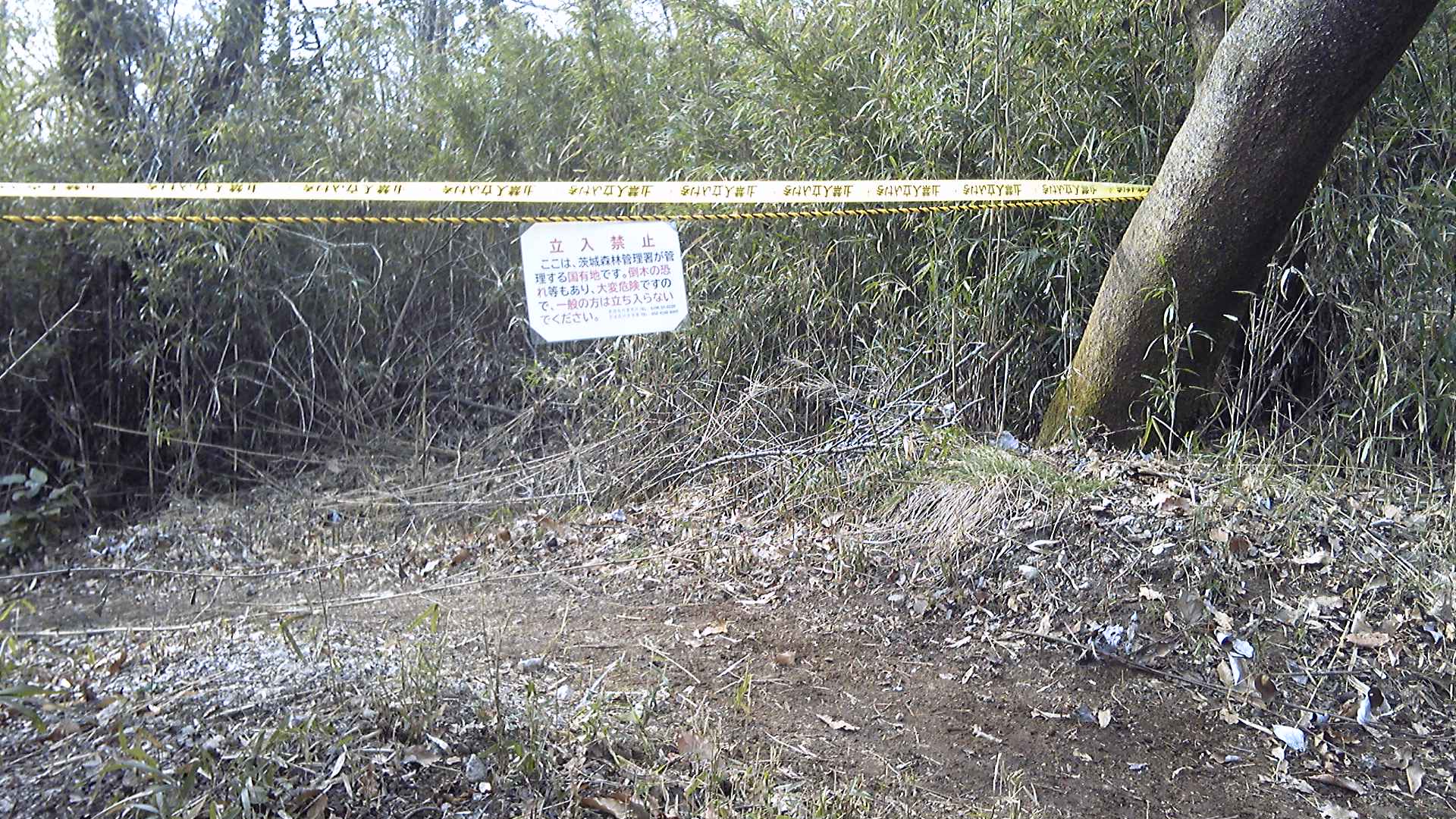 筑波山の主稜線から宝篋山に向かう登山道はアンテナ塔保守のための管理道になっている。だから、登山者はここをよく通っているし、進入禁止のガードも車両進入禁止を意味していたはずである。