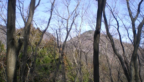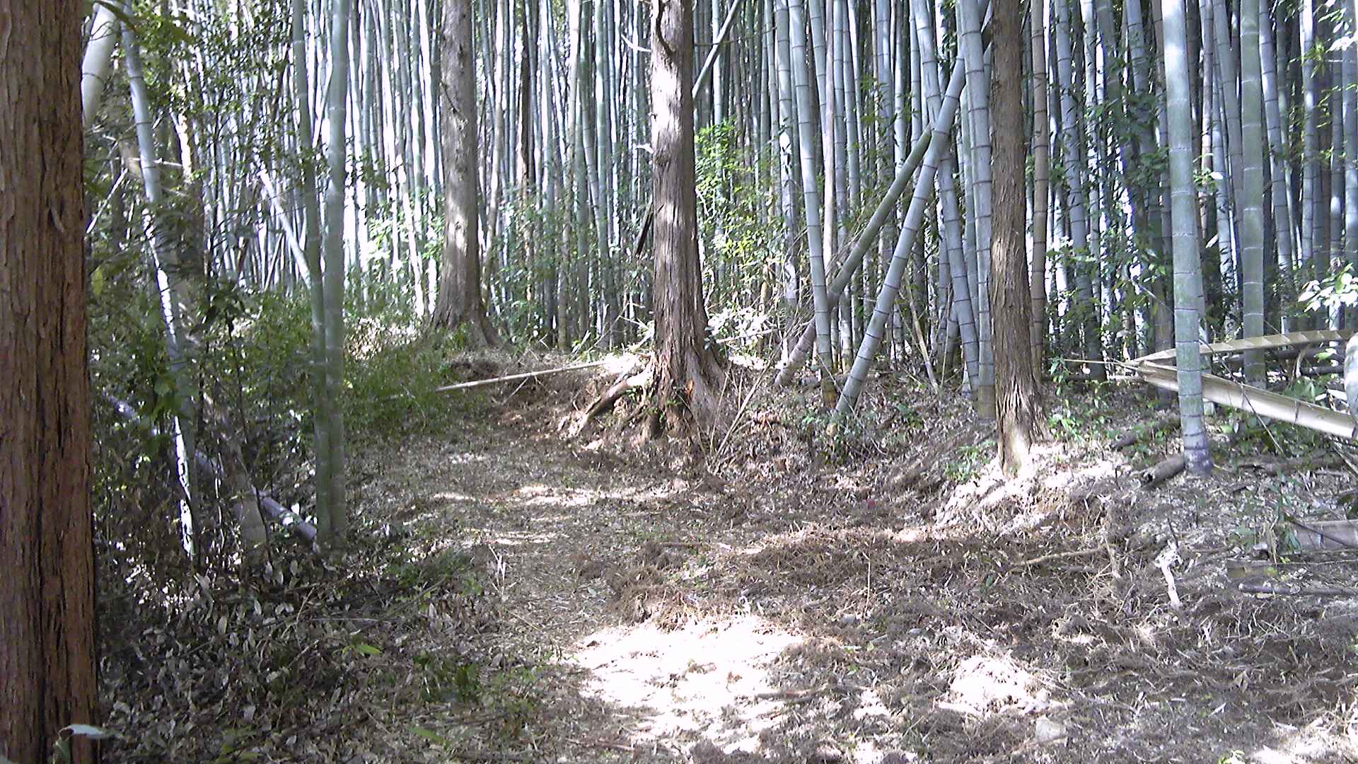 このルートは今日登ったみかん園ルートと谷を挟んで対岸にあたり、右の坊主山が朝と同じように見える。石置尾根をそのまま下ると梅林寄りに出てしまうので、途中から八五山ルートに入る計画だったのである。