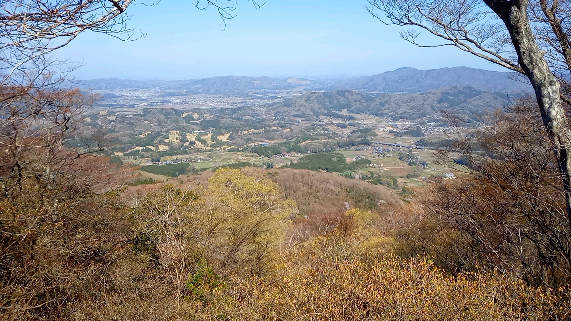チェーン封鎖地点からしばらく進むと、右手の樹間から景色が開けてきた。見えるのは雨引山方面である。雨引山から燕山の稜線で、このように景色が開けた場所は記憶する限りない。