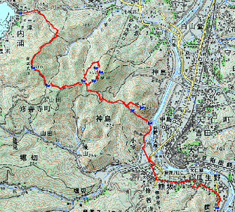結局、往復1時間以上かけてもとの場所に逆戻り。一応、表登山道も途中まで行ってみたものの、倒木あり草むらありだったのでことらも断念。湯河原駅まで4kmほど歩いてこの日の行動は終了となった。