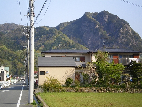 いよいよ間近に迫ってきた城山。垂直の岸壁はクライミングコースになっており、この日もクライマーが登っていました。