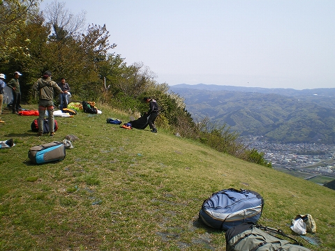 とすると、ここはパラグライダーの基地で、一般登山客のいるところではないのではないかと思った。そうなると私は場違いな存在である。休んでいけないことはないのだろうが、早々にリュックを背負って逆側の道に進んだ。考えてみれば、背面登山口の下から聞こえていた声は、ここにいた人達の話し声だった訳である。
