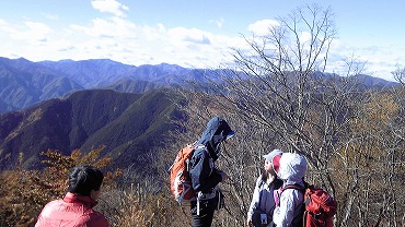 この頂上793mが本日の最高地点である。出発した軍畑駅の標高がおよそ250mだから、500mほど登ってきたことになる。2ヵ月前に丹沢大山で大バテした標高差だが、それほど疲れたこともなくここまで来れたのは上出来。他にも何組かのパーティーが休んだりお弁当を食べたりしている。