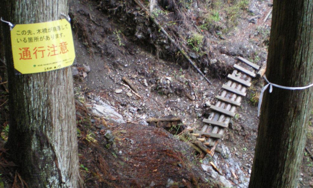 ここからの下りが、今回一番といっていい急坂だった。さすがに、ガイドブックで急坂と書いてあるだけのことはあった。下りだからよかったけれど、ここを前日に登ったら体力は残っていなかったかもしれない。途中で分かれる道があったので、もしかするとそちらが正当な登山道だったのかもしれない。