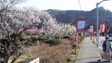 日向和田の駅で下りる人は結構多く、駅にはJRの人や観光協会の人が看板を立てたり、いろいろ忙しそうにしている。ちょうど梅が見ごろで、かなりの人出が予想されているようだ。普段この駅には止まらない青梅ライナーも、この日は臨時停車するらしい。下の写真にみられるように、まさに紅梅・白梅が満開となっている。