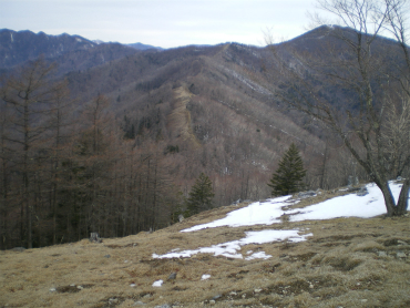 鷹ノ巣避難小屋から、いましがた歩いてきた日陰名栗峰方向を振り返る。