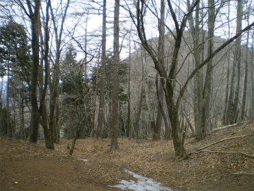 引き続き緩やかな山道を登って行く。雲取山の登山道の中でも、ここ登り尾根は最も登りやすいと評判で、それで「登り尾根」と名付けられたらしい。確かに登りやすいが、なかなか先に進まないのが難点である。小袖の先にあるという水場がなかなか出てこない。出てきたのは小袖登山口から1時間歩いた12時前頃であった。水はほとんど出ていない。少し先に広場があったのでお昼にする。
