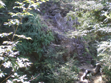 一息入れて服装を整え、再び急階段に挑む。自分のペースで歩けばまあ大丈夫だが、かなりの急勾配である。汗が噴き出してくる。標高は低いけれど、これだけの急坂をこなせればもっと高い山でも大丈夫なような気がする。そういえば孤高の人・加藤文太郎が、北アルプスも六甲山も大して変わらないと言っていた(本人が書いたのか新田次郎が書いたか覚えてないが)。