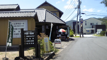 数珠、経本、納経帳を求めた遍路用品店「門前一番街」。奥が休憩所になっているので、二番に向かう前の身支度ができる。