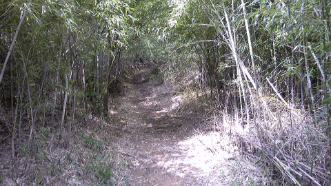 ところが、ここから傾斜が一段ときつくなる。坂の上の方で住宅もなくなり、あたりは山林、舗装道路だったのに登山道になってしまった。おまけに、登山道を登った後は急坂の下りである。ずいぶんと、余計な高さを登ったような気がする。もしかすると、車道を行くのが正解だったかもしれない。