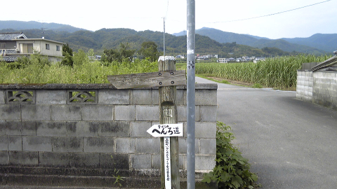 地蔵寺を出てしばらく進むと、進路を左にとれと遍路シールが指示する。左ということは南であり、遍路道と並行して南を走っている県道を渡ってしまうと思ったのだが、県道との交差点には何も書いてない。書いてないということはまっすぐだろうと思って、そのまま県道を横断する。さらに歩く。歩いても歩いても、次の指示が出てこない。