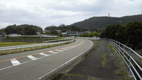 せっかくだからこの喫茶店に寄っていこうかとも思ったが、先ほどうどんを食べたばかりで休憩にはまだ早い。残念だったがなだらかな坂道をさらに下って行き、再び高速道路の下を抜ける。