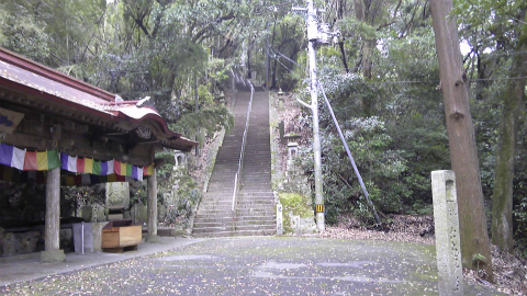 山門からさらに坂を上がって、ようやく噂の石段にたどり着く。これは三百三十三段のうち百段くらい登った後の二つ目のシリーズ。さらに上に「女やくよけ坂」「男やくよけ坂」が続いてようやく本堂。