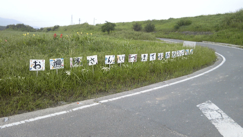 どっちに進むんだろうと迷っていたら、道端に「お遍路さんいつまでもお元気で」の看板が。