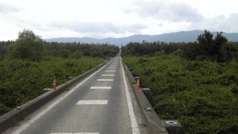 1車線しかないし、車なんてほとんど通らないだろうと思っていたのだが、その見通しは甘かった。農業用の軽トラックやら観光客と思われるセダンやら、結構通るのである。そのたびに、路肩に上がって通過するのを待つ。路肩から川まで遮るものはないので、よろけたらそのまま川に転落してしまう。ただし高さはそれほどでもないので、濡れるだけですみそうである。