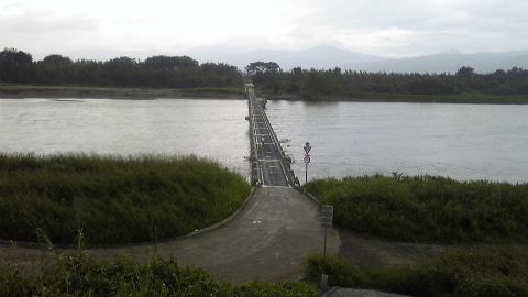 吉野川北側の大野島潜水橋。増水したら沈んでしまうが、沈んでも大丈夫なように余計なものはついていない。