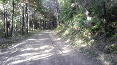 もしかしたら道を間違えたかと思う頃になって、ようやく林道との交差点に達した。このあたりは企業とのタイアップで森林整備をしているようで、「△△会社の森」などとそこらじゅうに書かれている。こういうのは、あまり好きではないなあ。