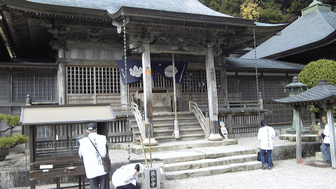 手水場で手を洗い、本堂・大師堂の順にお参りする。この日最初で最後の読経である。さすがに山の上なので混んではいなかったが、何組かは参拝に訪れていた。ご本尊の虚空蔵菩薩を何とか拝めないものか本堂の蔀戸から中を窺ってみたけれども、暗くてよく見えなかった。朝の藤井寺のようなケースの方が珍しく、またそのためにお姿がいただけるのである。