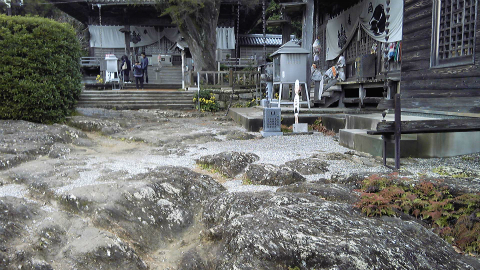常楽寺の境内は自然の岩が階段のようになっていて、本堂・大師堂へはその岩を登って行く。