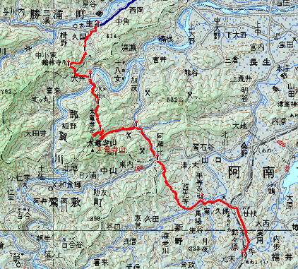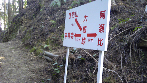 [行 程]太龍寺 12:50 →(4.4km) 14:00 坂口屋前 14:10 →(2.4km)14:35 阿瀬比遍路小屋 14:45 →(1.0km)15:10 大根峠 15:10 →(3.5km)16:15 二十二番平等寺 16:45→(5.3km) 18:00 JR阿波福井駅 18:27 [ →18:45 阿南(泊)]