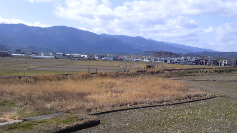 幸いこの日はほとんど車が来なかったので渡り放題であった。星越トンネルを出てすぐ、何かの建物があり駐車場も広くとられていたが、ひとの気配がしなかった。昔ドライブインでもやっていたのかもしれない。ひと気のない建物からしばらく進むと再び右手に低く土地が広がり、遠くにちらほらと人家が見えるようになる。