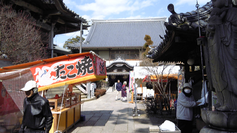 それと、人通りがかなり多い。参拝客がひっきりなしに訪れているのは、ここまでの札所の中で一番多かったかもしれない。参拝客が多いので、屋台の出店も多い。たいやき、たこやき、わたあめやよく分からないお菓子の屋台が、さほど広くない参道の真ん中あたりまで進出している。