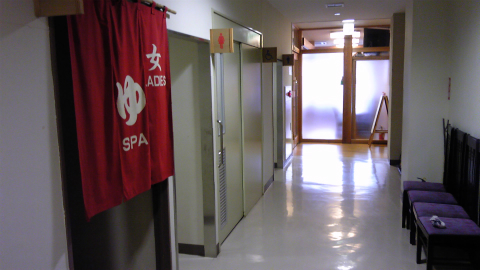 洗濯機・乾燥機は200円、コインを入れるのではなく受付で支払う。さっそく2Fの洗濯室に行くと、100円玉を入れる機械ではなく、普通の洗濯機・乾燥機と洗剤が置いてあった。「△△様からの寄贈」と書いてあったので、どなたかのご好意によるものであろう。ありがたいことである。洗濯機にその日の衣装を入れて、お風呂場に向かう。お風呂は1階の奥まったところにあり、私が泊まるひとり部屋はお風呂場の前であった。