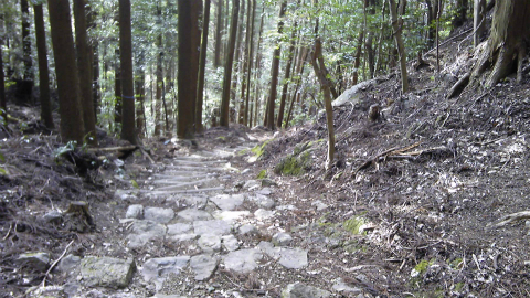この道は、弘法大師が歩かれた際に闇夜で水もなく、例によって加持されたところ清水が湧くとともに水底に光る石が現れて闇夜を照らしたという伝説があり、月夜御水庵という番外霊場が置かれている。ここを通るルートも考えられるが、問題はこの日4度目となる峠越えの道である。