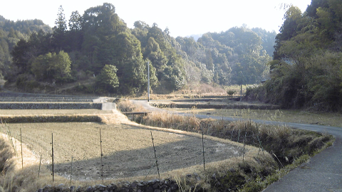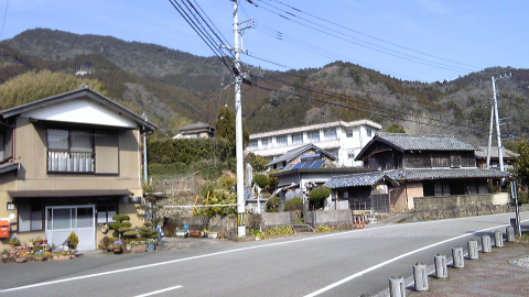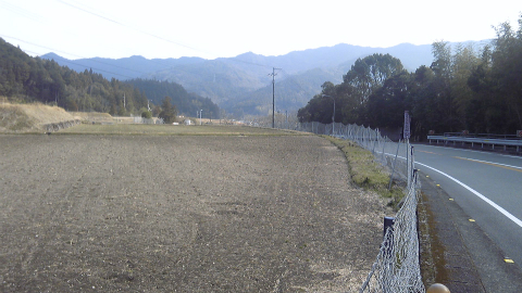 ひと気のない山道の国道をひたすら下って行く。気が付くと、いつの間にか傾斜が緩やかになり、左右に広がっているのは畑で、害獣除けの電気網で囲われている。ようやく人里が近づいたと分かってほっとする。このあたり、右の山道に入ると鬼ヶ岩屋温泉という温泉があるらしい。由緒はよく分からない。やがて、JR辺川駅への道案内が出てきた。牟岐のひとつ前の駅である。