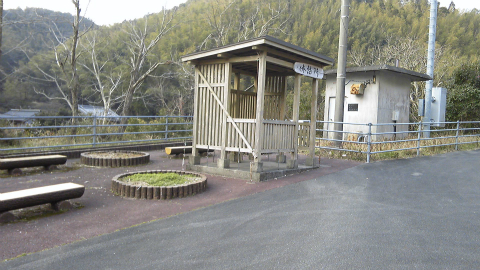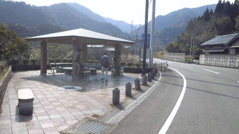 休憩所は打越寺の分岐を過ぎ、山河原トンネルをくぐると現れる。薬王寺への山ルート、久望トンネル周辺ほどではないが、このあたりも人里離れて休憩所が少ない地域である。