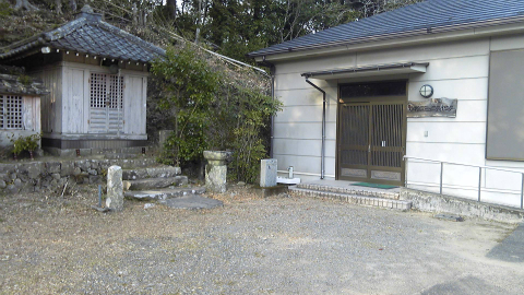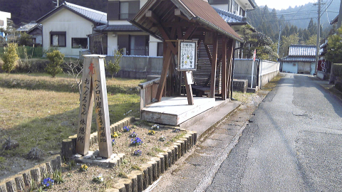 有名な善根宿「寿康康寿庵」。沼江への登り坂の前にある。里山再生事業本部との表札も掲げられており、中には流しや布団が備えられている。