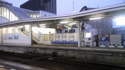 まだ夜は明けきらず、駅は照明できらびやかである。よく考えたら列車は阿南始発ではなく徳島から来るので、発車時間まで来ないのであった。ホームで待っていると寒いので階段を上がって待つ。列車は5分遅れで到着した。