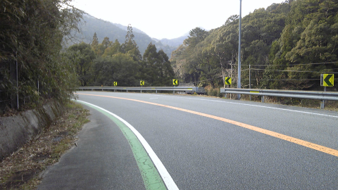 そして、次の一ノ坂トンネルから先は道が左右から合流するようになり、交通量が次第に増加していく。久望トンネルの前までは山の中を道が通っているという雰囲気だったのだが、一ノ坂トンネルから先は人里近しという感じである。