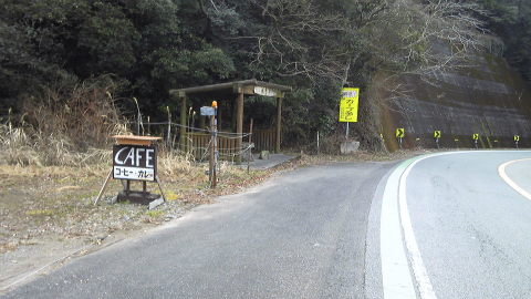 久望トンネルを越えると、道の左手に「CAFE コーヒー・カレー」と書いてある店の前に出た。残念ながら「CLOSE」の看板が出ておりやっていないようだったが、もし営業中であれば久しぶりのお店であった。まだ10時頃だったから、時間が早くてやっていなかったのか、客の少ない時期なのでやっていなかったのかは分からない。