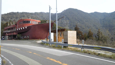 さて、阿波福井駅を出てからここまで、トイレのある休憩所というのはなかったのだけれど、十数kmぶりに登場したのが海賊船前へんろ休憩所である。船の形をしたドライブイン、その名も「海賊船」の前にあり、ドライブイン自体も営業していてド演歌を流している。