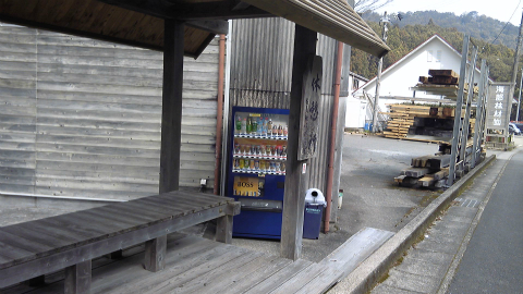 日和佐から30分ほど歩くと、海部木材さんの休憩所。トイレ・自販機あり。