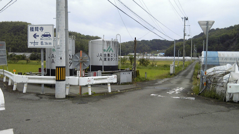用水路に沿ってこの迂回路を進む。周囲はまさに田園地帯で、水田があり畑がありビニールハウスがある。時折周囲を防風林で囲われた農家があり、大きな倉庫のような建物もある。誘導されなければ、お遍路が歩く道ではなくもっぱら地元の人が農作業に使う道のように思えた。