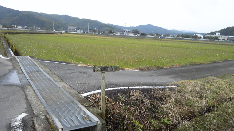 そして曲がり角まで行ってみると、軽トラなら通れそうだが普通車ではすれ違いがちょっと難しいくらいの狭い農道だった。脇に用水路が流れていて道路との境が何もないので、車だったら落ちないかちょっと不安で、地元の人以外は通ることはないだろう。