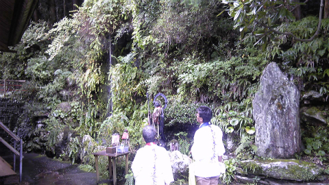 実際に、いまでも登山道の脇を水が流れており、どうやら山中のいろいろなところから湧水があるようだ。ご詠歌にも「すむ水を汲めば心のきよたきじ」と詠われており、本堂の奥にも小さいながら滝があるくらいだから、昔から豊富な湧水があったものと思われる。