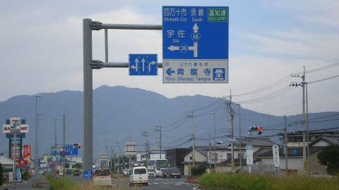 仁淀川大橋を渡ると、土佐市内である。遍路地図を見ていた時には地方都市のような風情を予想していたのだが、片側2車線の道路の両側に大きなロードサイド店が続く風景は、首都圏の郊外と変わらない。