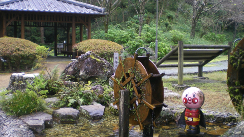 水が流れて水車が回っていて、その傍らに苔むしたアンパンマンの人形がある。やなせたかし氏の出身地は高知なので、高知駅の発車の際には「アンパンマンのテーマ」が流れる。アンパンマンやトトロは私が子育てした頃の作品だが、次世代に残りそうなのは何よりである。