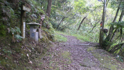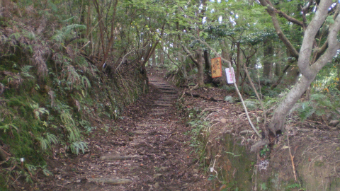 休憩所の裏手から峠道に入る。ここはトンネルができるまで、高岡と宇佐を結ぶ生活道路だったそうだ。よく整備されている。